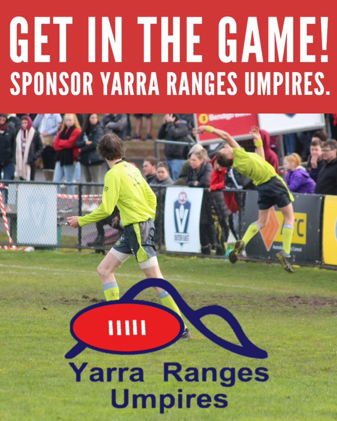 Yarra Ranges Umpires Association (YRUA) is a key stakeholder in the Outer East Football & Netball League. Umpires in Australia Rules Football play a key role in one of most popular sports in Australia and our Association is proud to be a part of this iconic Australian Institution.
